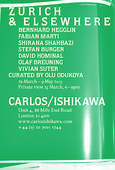 Bernhard Hegglin, Fabian Marti, Shirana Shahbazi, Stefan Burger, David Hominal, Olaf Breuning, Vivian Suter. Curated by Olu Odukoya